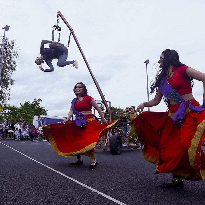 In July 2025, Cairde Sligo Arts Festival and Festival of Fools partnered together on a vibrant North-South programme of circus, street theatre performances, workshops, talks and industry events; uniting exceptional artists from across the island of Ireland in a dynamic celebration of circus, street ...theatre, and outdoor arts. This initiative is rooted in the spirit of cross-cultural exchange, fostering meaningful connections between artists and communities from both the North and South through performance and cross community workshops. At its core, this programme is a joyful exploration of shared heritage, diversity, and creative expression, using the universal language of performance to transcend borders.